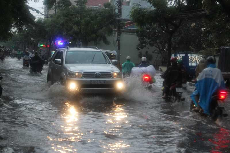 Đường ngập đã khiến giao thông trên một só tuyến đường bị ùn tắc nghiêm trọng như đường Cộng Hòa, đường Âu Cơ, đường Lạc Long Quân.