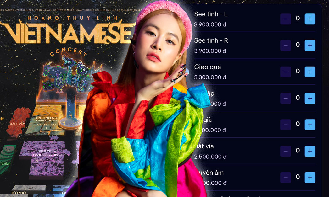 Vé của Vietnamese Concert của Hoàng Thùy Linh được mở bán từ 12h ngày 8/9 với các mức giá từ 1,5 triệu VNĐ đến 3,9 triệu VNĐ. Đây là con số tương đối "dễ thở" nếu so với các concert khác của làng nhạc Việt trong thời gian qua.