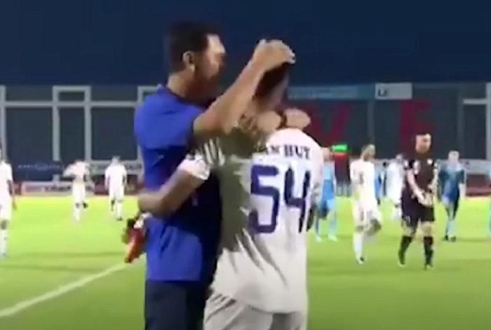 Video: HLV Hứa Hiền Vinh và cầu thủ Văn Huy ôm nhau giảng hòa