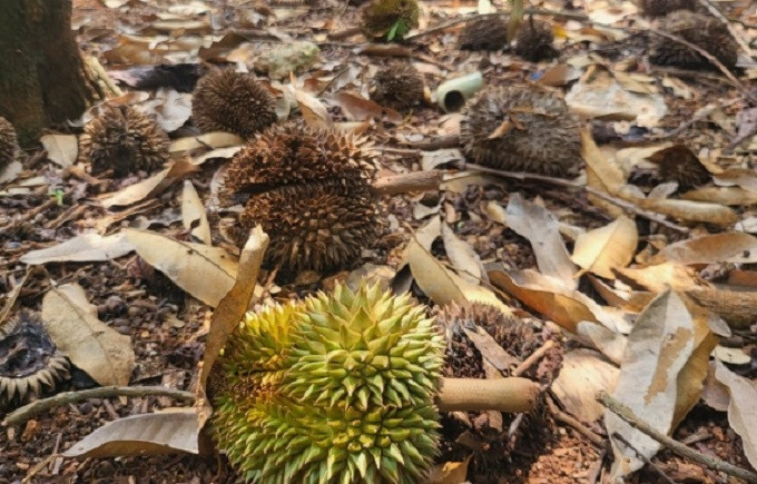 Sầu riêng non rụng nằm la liệt, khô héo khiến người dân lao đao.