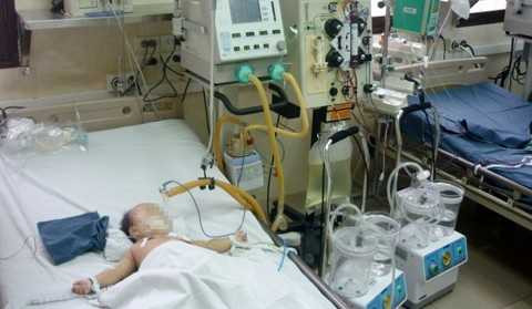 | Bé Nguyễn Thị Hải vẫn tiếp tục phải thở máy. |