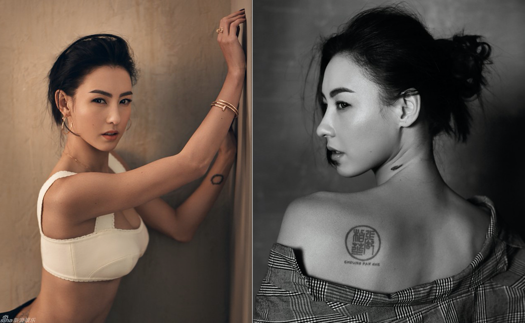 Cô không ngần ngại khoe hình xăm trên lưng.