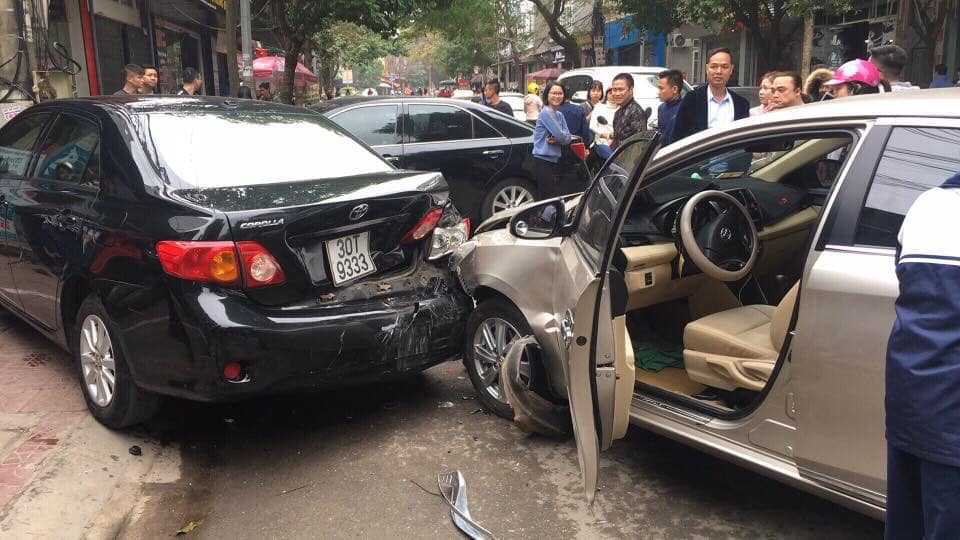 Khi đi đến trước số nhà 105, chiếc xe trên va chạm với xe máy BKS 88B1-124.45 do hai mẹ con điều khiển. Sau đó, xe này đâm vào đuôi ô tô BKS 30T - 9333 lao về phía trước khiến 2 người đi bộ hoảng sợ bỏ chạy. Và xe bị ủn chỉ dừng lại, khi tông vào một xe dừng đỗ bên kia đường rồi lao vào cột điện.