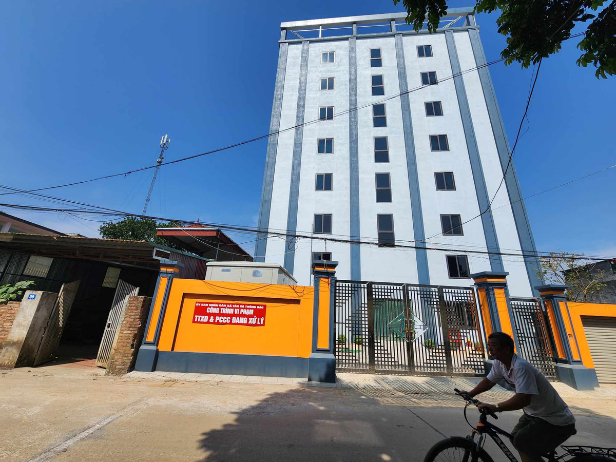 Tòa chung cư mini ở xã Tân Xã (huyện Thạch Thất) xây vượt 6 tầng so với giấy phép. (Ảnh: Quang Phong).