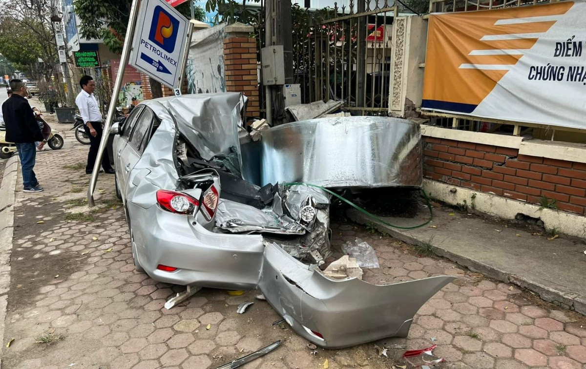 Hiện trường vụ tai nạn cuộn thép rơi đè bẹp ô tô ở Hà Nội. (Ảnh: FB).