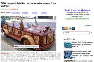 Oddity Central, Topix, Auto Chunk… khá nhiều trang mạng quốc tế đã đưa tin và bình luận về chiếc xe độc đáo làm gần như hoàn toàn bẳng gỗ tại Việt Nam.