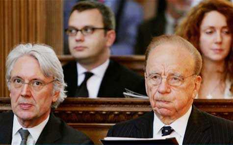 Tỷ phú truyền thông Rupert Murdocch và ông Les Hinton (trái)