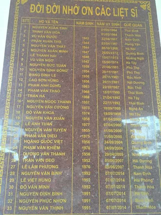 Theo lời kể của nhà báo Vũ Thanh Hường, ở Trường Sỹ quan Không quân Nha Trang có một tấm bia tưởng niệm những chiến sĩ không quân đã hy sinh. Hiện, danh sách ấy có 33 người. Trên danh sách, có những chiến sĩ sinh năm 1992, hy sinh năm 2014, khi mới 22 tuổi đời. Họ còn quá trẻ.