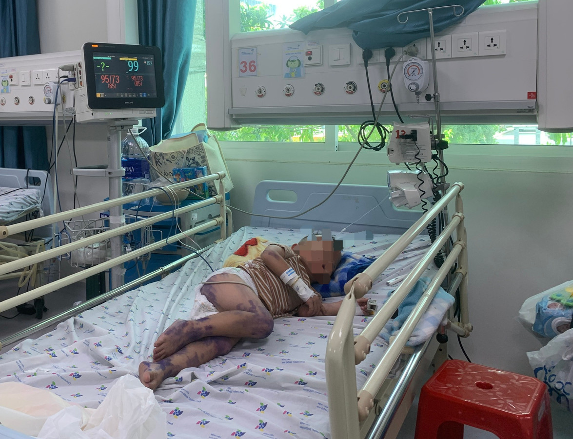 Bệnh nhi đang điều trị tại Bệnh viện Nhi đồng Thành phố. (Ảnh: Lâm Ngọc)