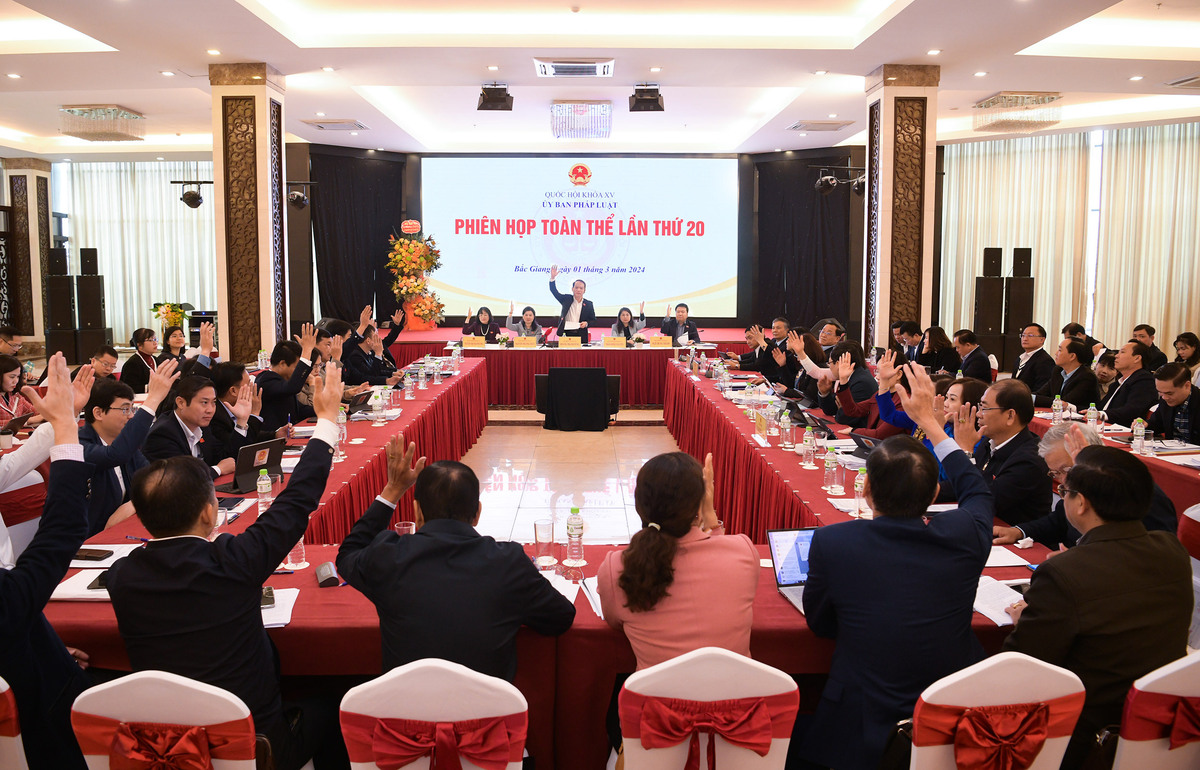 100% thành viên Ủy ban Pháp luật tham gia biểu quyết tán thành. (Ảnh: quochoi.vn)