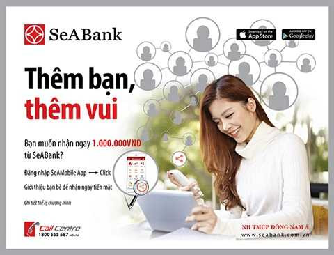 (VTC News) - Nhằm mang lại nhiều ưu đãi dành cho các khách hàng nhân kỷ niệm 22 năm thành lập, từ nay đến ngày 18/07/2016, Ngân hàng TMCP Đông Nam Á (SeABank) chính thức triển khai chương trình “Thêm bạn, thêm vui” với hơn 2.000 giải thưởng hấp dẫn dành cho các cá nhân giới thiệu thành công khách hàng mới sử dụng dịch vụ Ngân hàng trực tuyến và di động SeANet, SeAMoblie Web, SeAMobile App.
