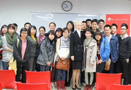 | Bà Lady Barbara Judge chụp ảnh lưu niệm cùng các sinh viên tại ĐH Anh Quốc Việt Nam |