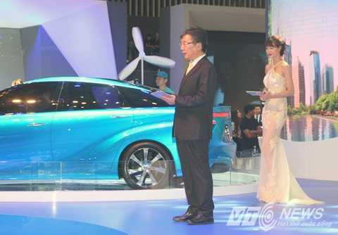 Năm nay, gian hàng Toyota gây chú ý đặc biệt khi trưng bày chiếc xe "siêu xanh" Toyota Mirai, chiếc xe chạy bằng hydro lỏng và ông Tổng Giám đốc Maruta cũng hứa hẹn sẽ mang về Việt Nam chiếc xe hybrid bán chạy nhất thế giới Toyota Prius.