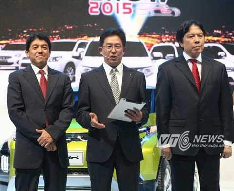| Ông Kazuhiro Yamana (đứng giữa) Tổng Giám đốc VinaStar, nhà nhập khẩu và phân phối xe Mitsubishi tại Việt Nam |