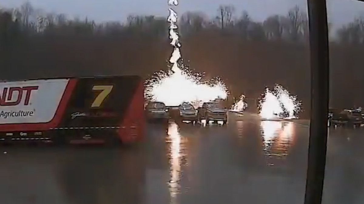 Một chiếc ô tô đang đỗ tại Mooresville (North Carolina, Mỹ) bất ngờ bị sét đánh khiến những tia lửa điện bắn ra khắp nơi, thậm chí lan qua hàng rào xung quanh.
