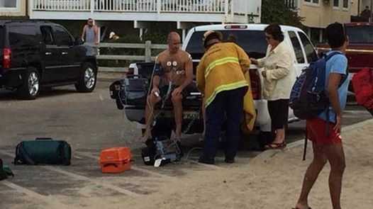 | Nạn nhận bị sét đánh được cứu chữa bên bờ biển |
