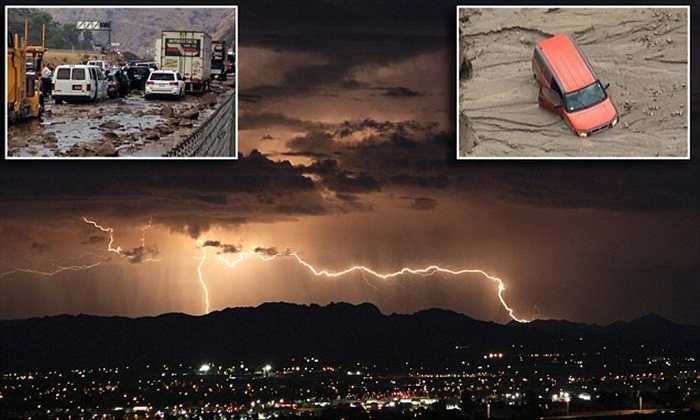 Mưa lũ dữ dội đổ bộ Fort Tejon, cách thành phố Los Angeles hơn 100km về phía bắc, gây ra tắc nghẽn trên tuyến đường cao tốc bên ngoài thành phố.