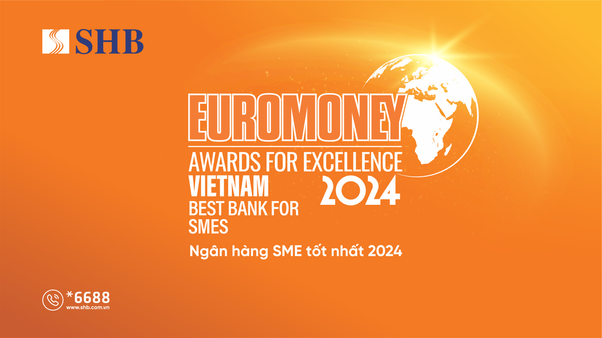 Trong khuôn khổ “Awards for Excellence 2024”, Ngân hàng SHB được vinh danh là “Ngân hàng SMEs tốt nhất Việt Nam”. Theo Tạp chí Euromoney, cho vay SMEs (doanh nghiệp vừa và nhỏ) của SHB năm 2023 tăng trưởng 54% - con số cao nhất trong các ngân hàng tại Việt Nam.