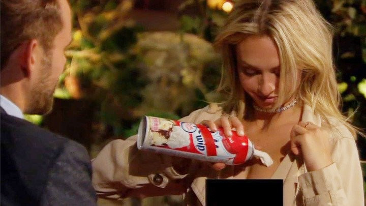 Corinne Olympios đổ kem vào ngực và đề nghị Nick Viall liếm chúng.