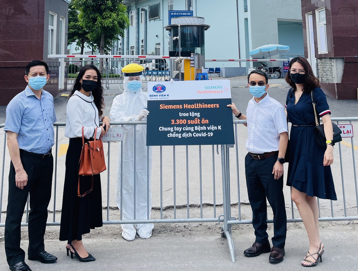 Trong bối cảnh có nhiều thách thức trong hoạt động của viện K, là đối tác tin cậy và lâu năm của bệnh viện K, Siemens Healthineers đã trân trọng trao tặng 3.300 suất ăn tới bệnh viện, với mong muốn hỗ trợ một phần các bác sĩ và bệnh nhân được đảm bảo sức khỏe dinh dưỡng, kiên cường chống dịch.