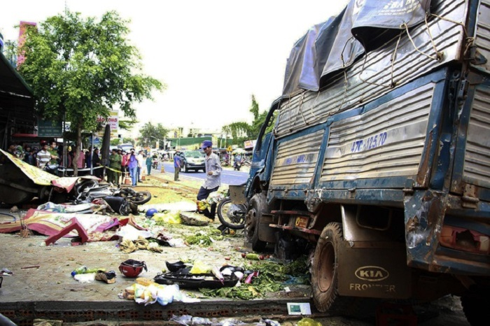 Sáng 13/6, xe tải chở phân lưu thông trên đường Hồ Chí Minh hướng Đắk Nông đi Đắk Lắk thì bị mất phanh, va chạm với xe container chạy trước. Sau đó, tài xế tiếp tục lái xe di chuyển khoảng 300 m thì cho xe va chạm vào xe tải mang biển kiểm soát 47C, khiến phương tiện này lao vào chợ bên lề đường cuốn 10 người cùng 9 xe máy vào gầm. Vụ tai nạn khiến 5 người chết, 5 người bị thương.