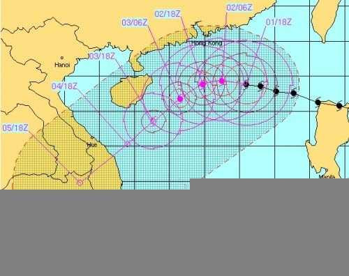 | Dự báo vị trí và hướng di chuyển của cơn bão Krosa theo trang dự báo của Hải quân Mỹ |