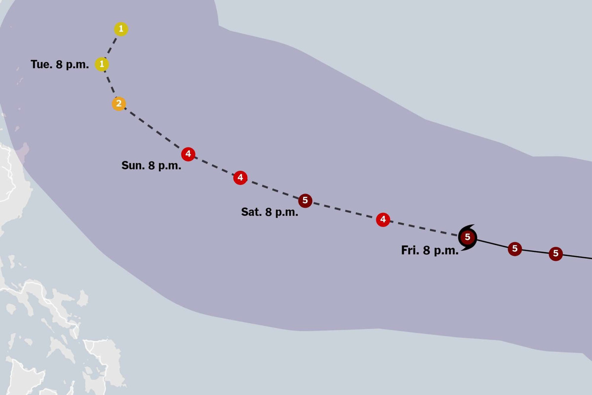 Tờ New York Times dẫn nguồn từ Trung tâm cảnh báo bão chung thuộc Hải quân Mỹ cho hay, siêu bão Mawar đang di chuyển về phía Tây trên Thái Bình Dương và tiến về đất liền Philippines. Siêu bão đang di chuyển với tốc độ 22 km/h, sức gió tối đa duy trì ở mức 225 km/h.