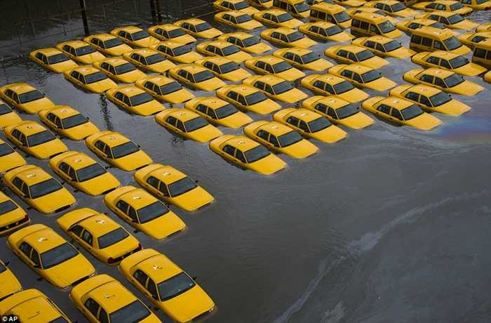 Hàng trăm xe taxi bị ngập nước ở bãi đỗ tại Hoboken, New Jersey