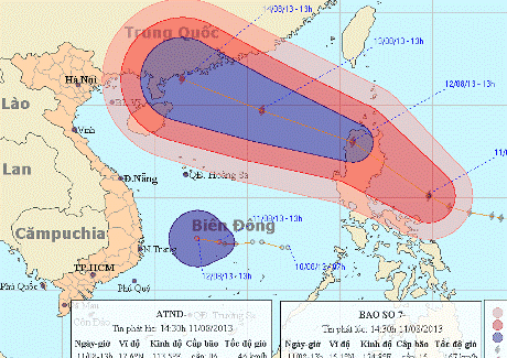 Trong khoảng 24 đến 48 giờ tiếp theo, bão có khả năng đổi hướng di chuyển theo hướng Tây Tây Bắc, mỗi giờ đi được khoảng 20 - 25km. Đến 13 giờ ngày 13/8, vị trí tâm bão ở vào khoảng 19,7 độ Vĩ Bắc; 115,8 độ Kinh Đông, trên khu vực phía Đông Bắc Biển Đông, cách quần đảo Hoàng Sa khoảng 520km về phía Đông Bắc.