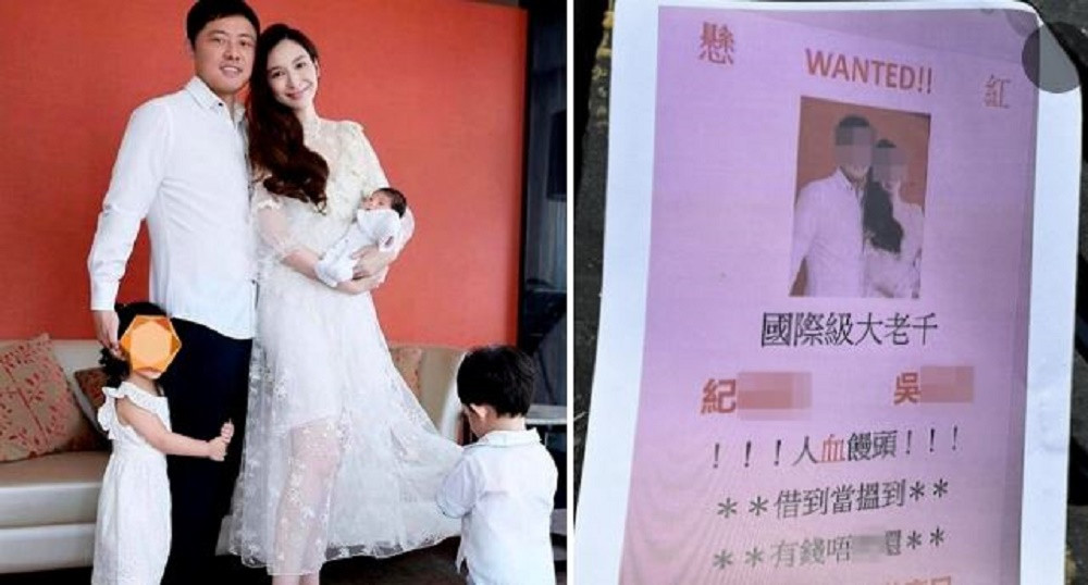 Ngô Bội Từ và Kỷ Hiểu Ba bị dán giấy đòi nợ khắp đường phố Hong Kong. Ảnh: HK01.