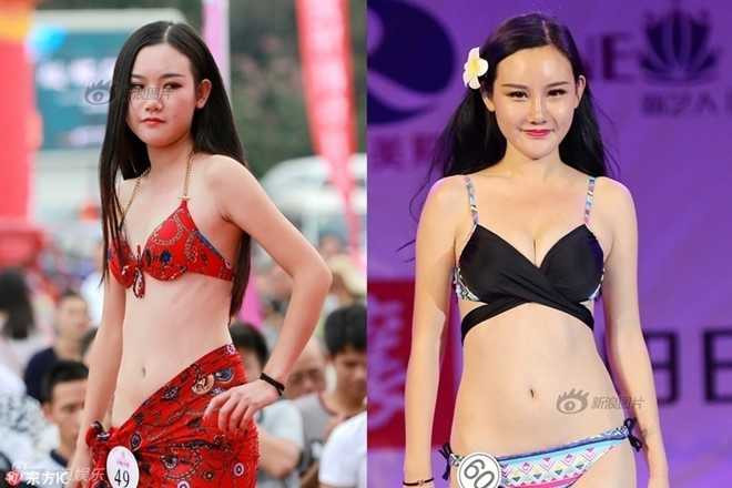 Hai hình ảnh so sánh Lý Viên Viên trước và sau thẩm mỹ. Tại cuộc thi trước đó, cô trắng tay nhưng sau thẩm mỹ, cô giành ngôi vị Á quân.