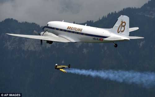 Hành khách trên chiếc máy bay Breitling Douglas DC-3 đã gần như bị sốc khi thấy một người đàn ông bên trong một đôi cánh phản lực, khi ngó ra ngoài cửa sổ đoạn đường bay trên hồ Lucerne - không phận Thuỵ Sỹ.