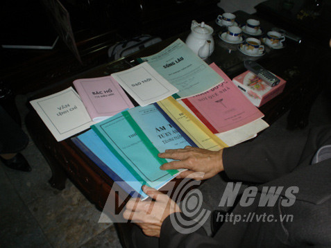 Để chứng minh lời nói của mình là đúng, TS. Vũ Thế Khanh mở cửa căn phòng chứa tài liệu phía trong phòng làm việc của mình, bê ra một đống sách vở.