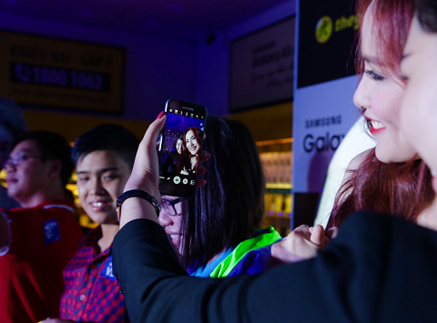 | Lan khuê thân thiện selfie cùng các khách hàng đầu tiên sở hữu siêu phẩm. |