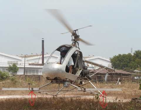 | Chiếc trực thăng đang bay treo ở khoảng cách hơn 25cm so mặt đất. Ảnh: Phan Cường |