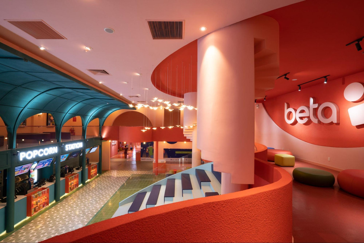 Về thiết kế rạp, Beta Cinemas Trần Quang Khải vẫn giữ nguyên được tinh thần trẻ trung, năng động của chuỗi rạp chiếu phim Beta nhờ sự sáng tạo trong việc sử dụng các gam màu neon bắt mắt. Kiến trúc mái vòm mang theo vẻ đẹp cổ điển nhưng vẫn điểm xuyết các thiết kế mang đậm hơi thở hiện đại, đặc biệt là hòa lẫn dấu ấn - những “đặc sản” riêng có của mỗi nơi Beta đặt chân tới.