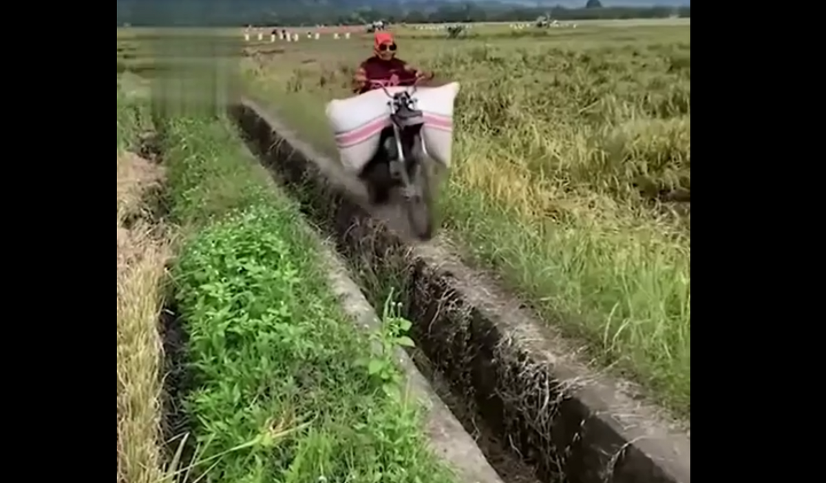 Siêu tài xế phóng xe máy như bay trên mép cống