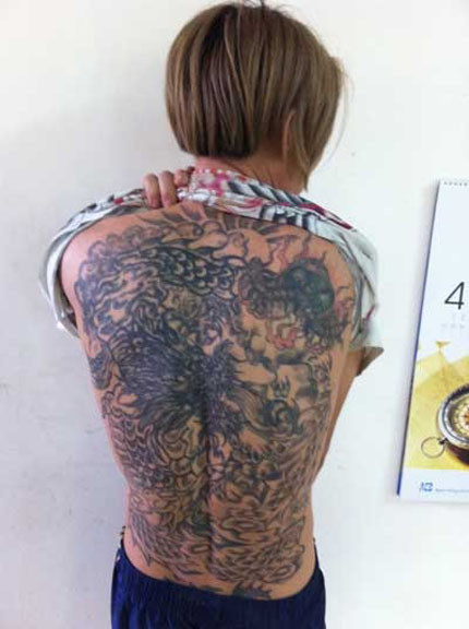 | Hình xăm trên lưng của đối tượng Thảo. |