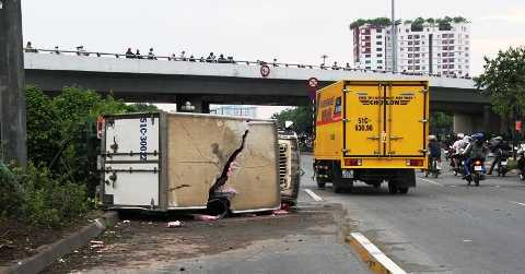 Trước đó, khoảng 16h30 ngày 23/8, trên QL 1A, ngay trước Công viên phần mềm Quang Trung (P. Tân Chánh Hiệp, Q.12, TPHCM), một ô tô tải BKS 51C-30022 (chưa rõ danh tính tài xế) chạy hướng từ cầu vượt Tân Thới Hiệp về ngã tư An Sương, khi đến khu vực trên mất lái đâm nát dãy phân cách, lật ào giữa quốc lộ, 3 người thoát chết trong gang tất.
