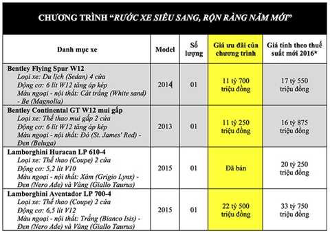 Có lẽ đơn vị nhập khẩu 2 thương hiệu Bentley và Lamborghini đưa ra chương trình giảm giá sốc này nhằm đón trước khả năng sẽ tăng thuế nhập khẩu và thuế TTĐB đánh vào dòng xe giá trị cao, dung tích xylanh lớn trên 3.0L.