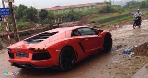 Trước đó, một siêu xe Lamborghini Aventador màu cam khác cũng được bắt gặp đang di chuyển trên đoạn đường đầy bùn đất ở Quảng Ninh.