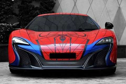 | Đầu tiên là siêu xe McLaren 650S với bộ cánh của người nhện. Toàn bộ thân xe được phủ kín bởi hai màu đỏ, xanh lam chủ đạo. Đây cũng là hai màu sắc rất đặc trưng của người nhện trong bộ phim cùng tên. Bên cạnh đó còn là các chi tiết nhện và mạng nhện màu đen đối lập. |