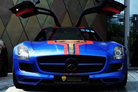 | Tiếp đó là siêu xe "cánh chim" Mercedes-Benz SLS AMG mang phong cách của anh hùng "man of steel" siêu nhân. |