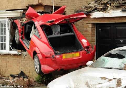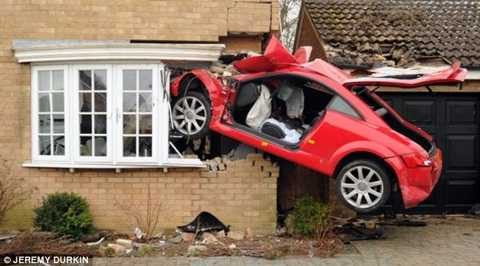 Cảnh sát Suffolk cho biết, khoảng 1h45 sáng tại Lowestoft, Suffolk, một thanh niên 20 tuổi lái chiếc xe Audi TT màu đỏ đâm thằng vào tường nhà dân.