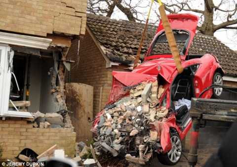 | Siêu xe đâm nát nhà dân - Ảnh: Dailymail |