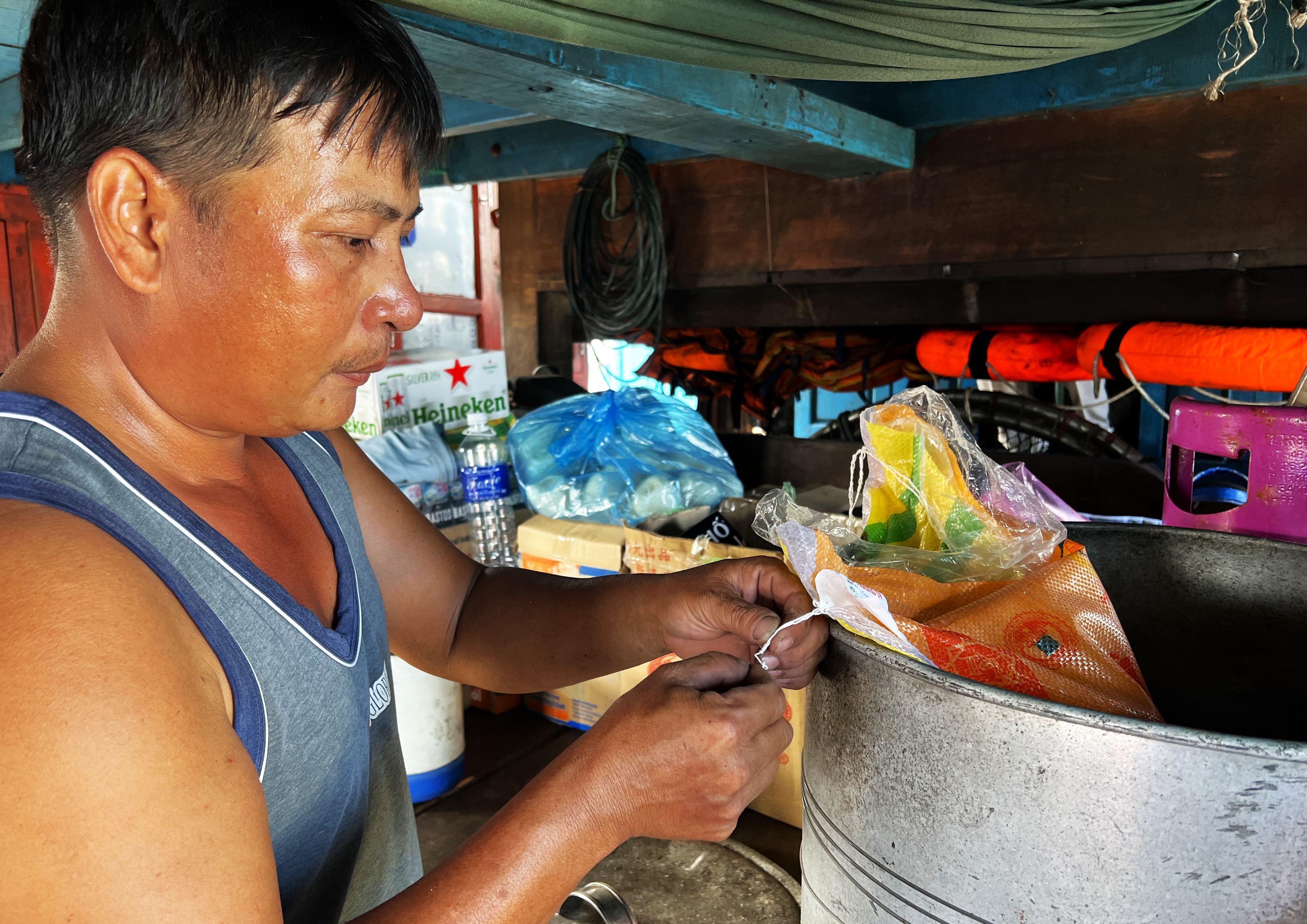 “Buồn thiệt. Nhưng ngồi đó thì tiền đâu mà ăn” - Anh nói. Anh nhận vá lưới thuê, sửa máy nhỏ cho tàu trong xóm, đưa con đi học, phụ vợ bán hàng. Không phải anh không thấy mất mát. Nhưng anh chấp nhận rằng vai trò trong gia đình có thể thay đổi mà không làm mình nhỏ lại. “Ở nhà mới biết vợ cực cỡ nào” – Anh trải lòng.
