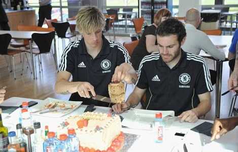 | Sau khi cắt bánh, Torres lao ngay vào luyện tập cùng Chelsea. |