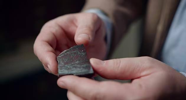 Phiến đá chứa cấu trúc của một sinh vật sơ khai, có hình dáng gần giống phiên bản thu nhỏ của thực vật hiện đại. (Ảnh: UCL)