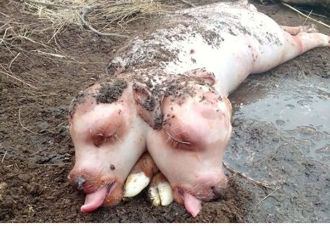 Hồi tháng 2, một con bê hai đầu chào đời tại tỉnh Buriram, đông bắc Thái Lan. Nó vẫn sống sau sinh nhưng không cầm cự được lâu do khó thở.