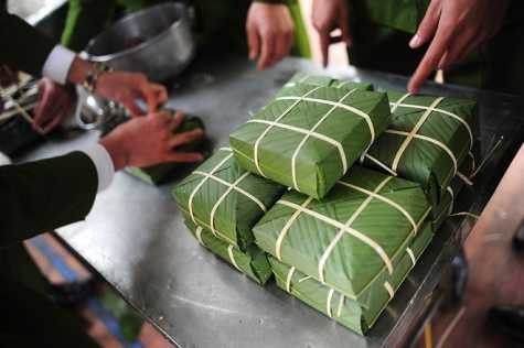 | Để chuẩn bị cho buổi gói bánh chưng, từ ngày hôm trước các sinh viên Cảnh sát đã đi chợ mua lá dong, đỗ, gạo... về ngâm cẩn thận. Phương pháp gói được mọi người truyền miệng cho nhau hoặc có bạn nghiền ngẫm qua video trên mạng. |